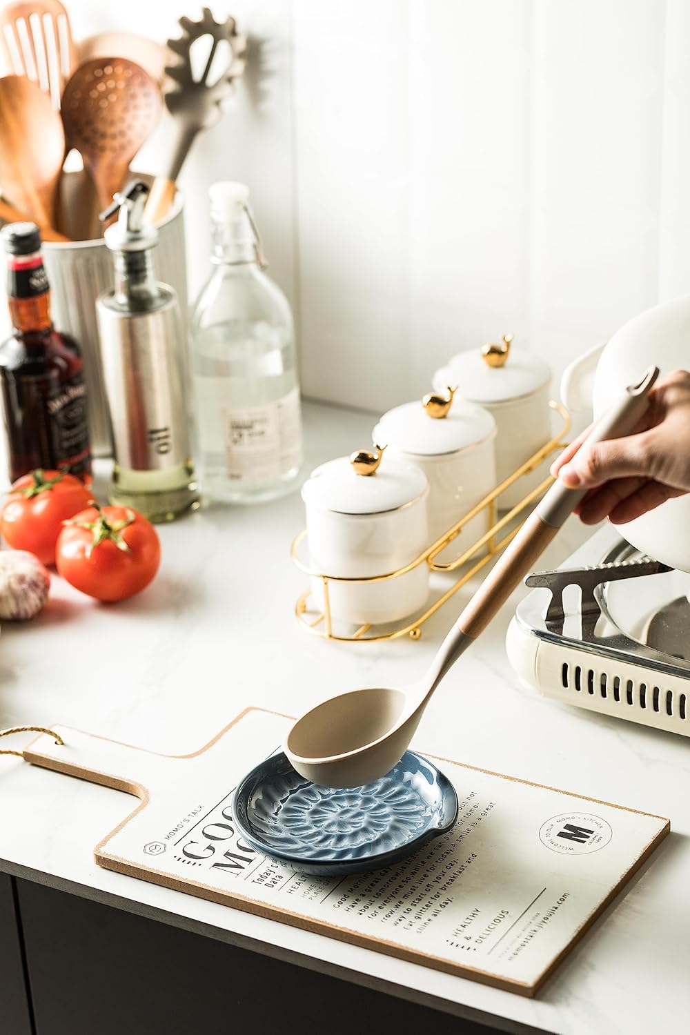 - This kitchen spoon rest will easily complement any kitchen décor style. No need to sacrifice style for function. The unique spiral pattern design and versatility go hand in hand.Choose from a variety of colors to match your kitchen decor and personality