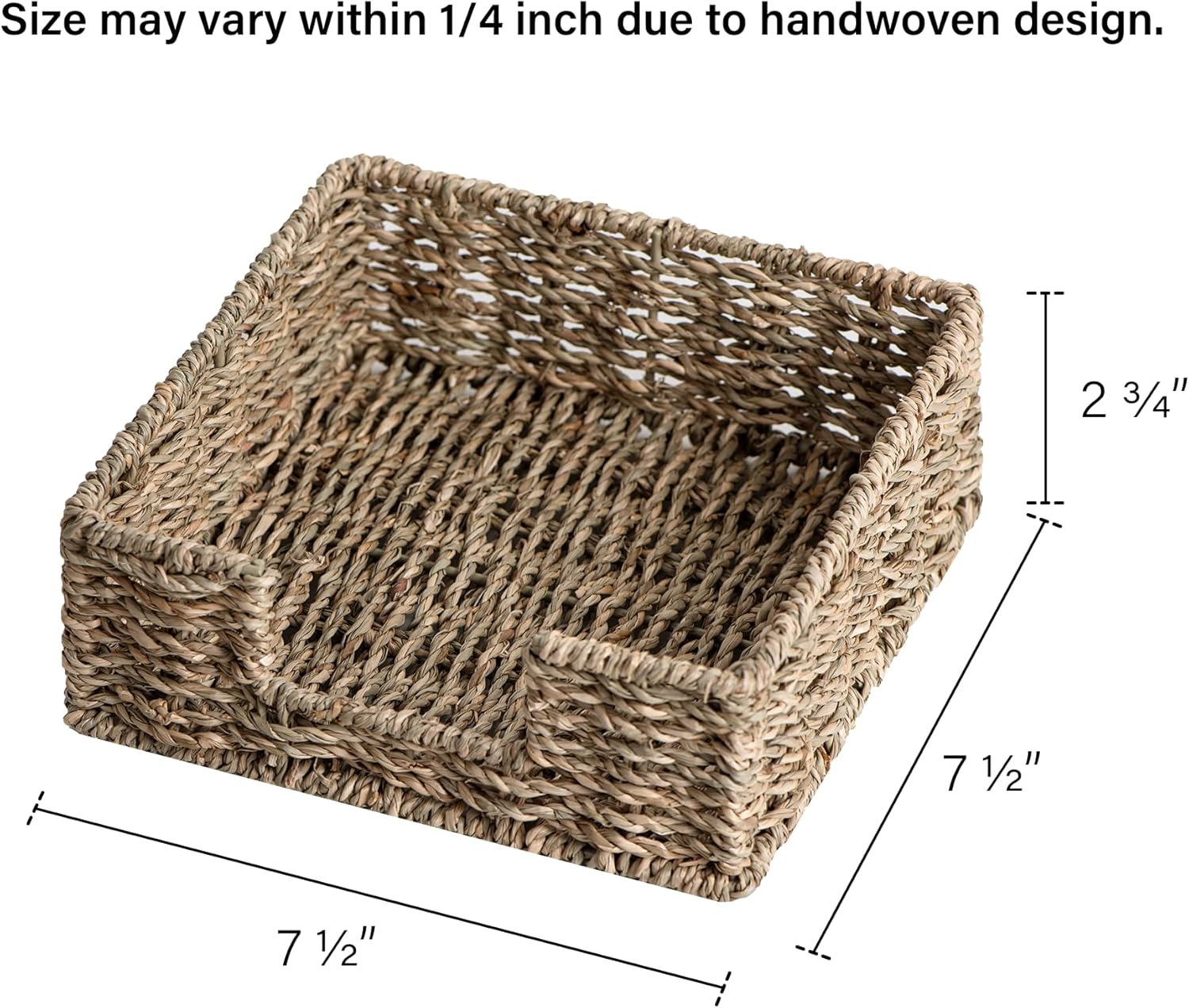 - Dimensions: 7 ½"L x 7 ½"W x 2 ¾"H, size may vary within 1/4 inch due to handwoven design.