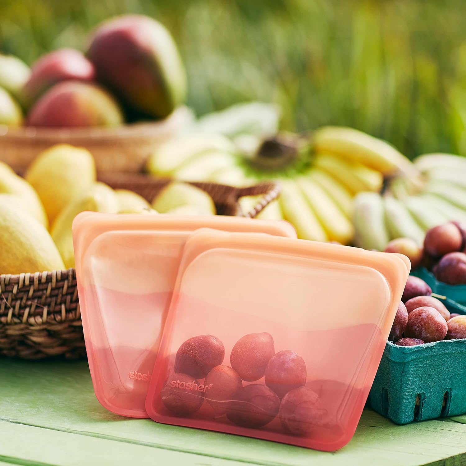 - REUSABLE, REWASHABLE CONTAINERS: Stasher silicone reusable storage bags make it easy to ditch single-use plastic and meet endless household needs. Safe for the dishwasher, microwave, oven (up to 425°F), and more.