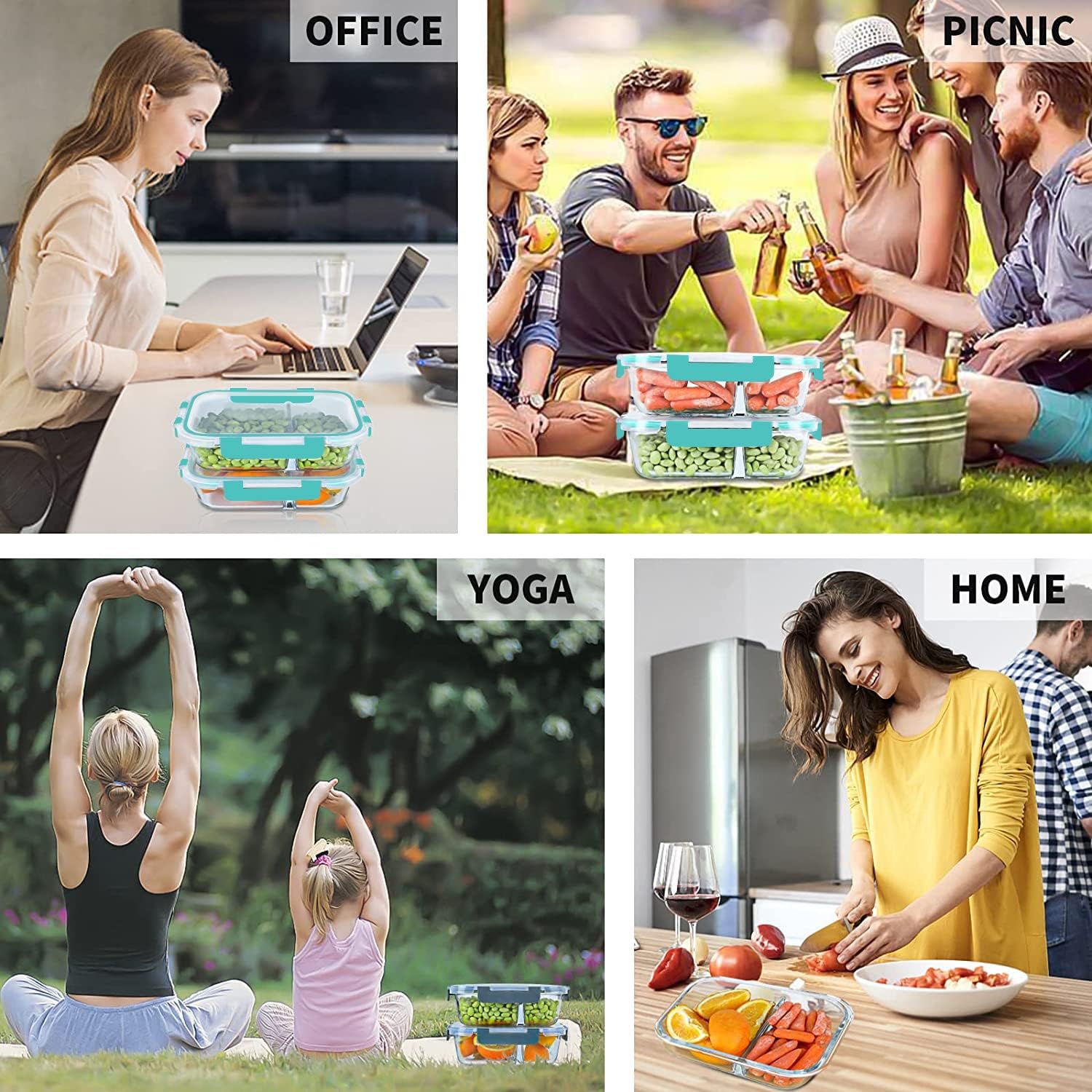 - PREMIUM QUALITY BOROSILICATE GLASS: Our glass lunch containers are made of premium borosilicate glass, stronger than cheap glass food storage containers, can go straight from the fridge to the microwave or oven to the table. Glass containers don't absorb stains or odors, which is easy to clean and made for long lasting