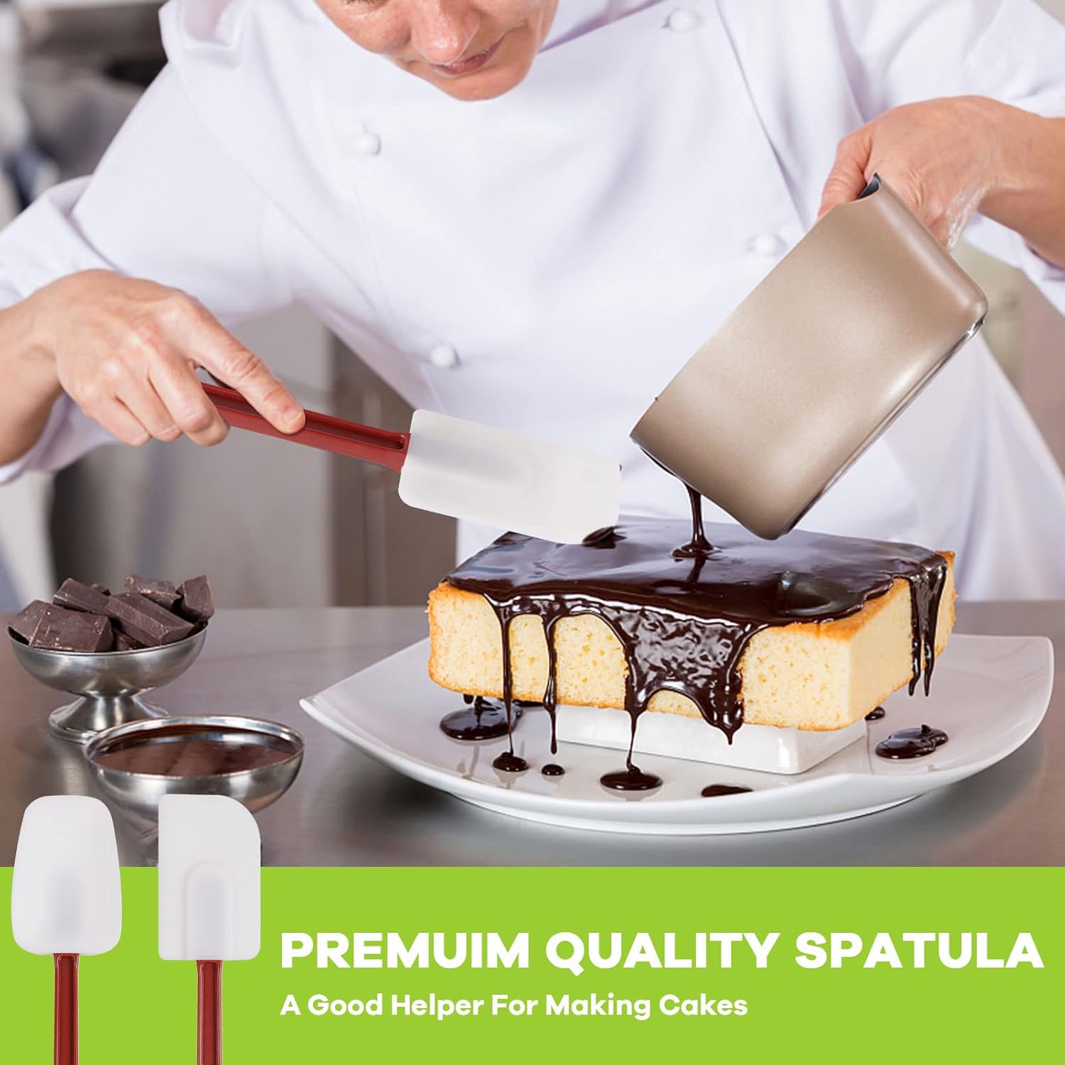 - STRONG & FLEXIBLE: This high heat silicone spoonula set, is sturdy to stir sticky dough, and soft on the edges to spoon cream from your bowl; Edges of these silicone rubber spoonulas are thin and flexible, perfect to reach the bottom of mixer bowls (which have high sides) without getting your hands sticky. Durable and strong, these silicone rubber spatulas can serve for years, with no need for special care.