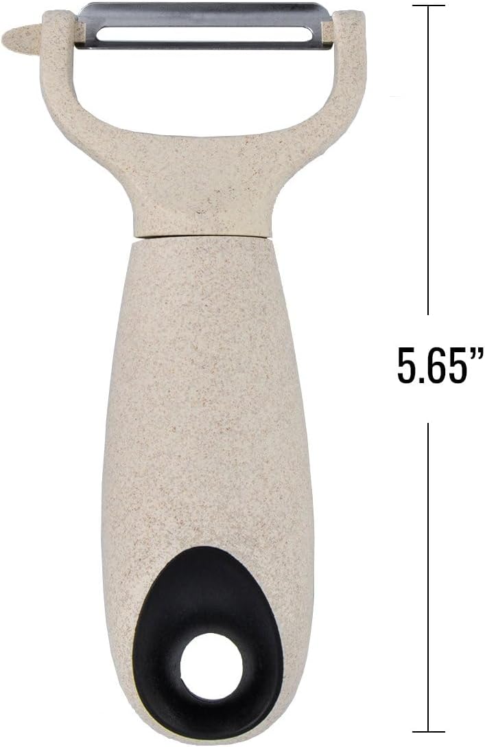 - VEGETABLE PEELER - Vegetables, fruit, potatoes, and more, the Beille peeler can handle it all! The wheat straw vegetable peeler comes with a straight blade for all kinds of peeling tasks; the peeler also features a thick, rounded handle with a speckled matte finish, ensuring a comfortable and controlled grip