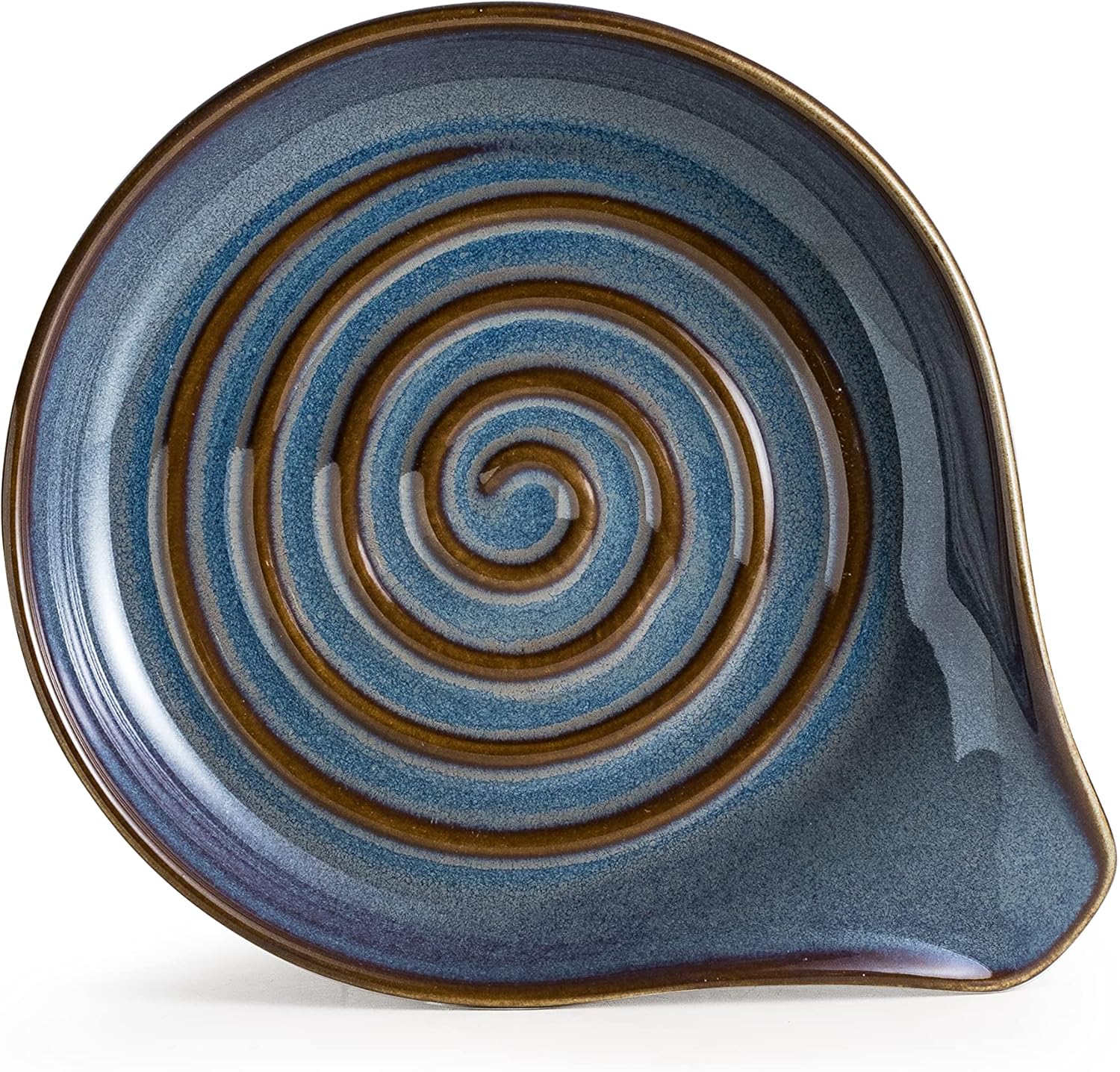 - [Unique Look] The reactive glaze with swirling pattern creates an elegant look. This spoon rack will easily complement any kitchen style. No need to sacrifice style for function; add a classic touch to your kitchen with this spoon rest.