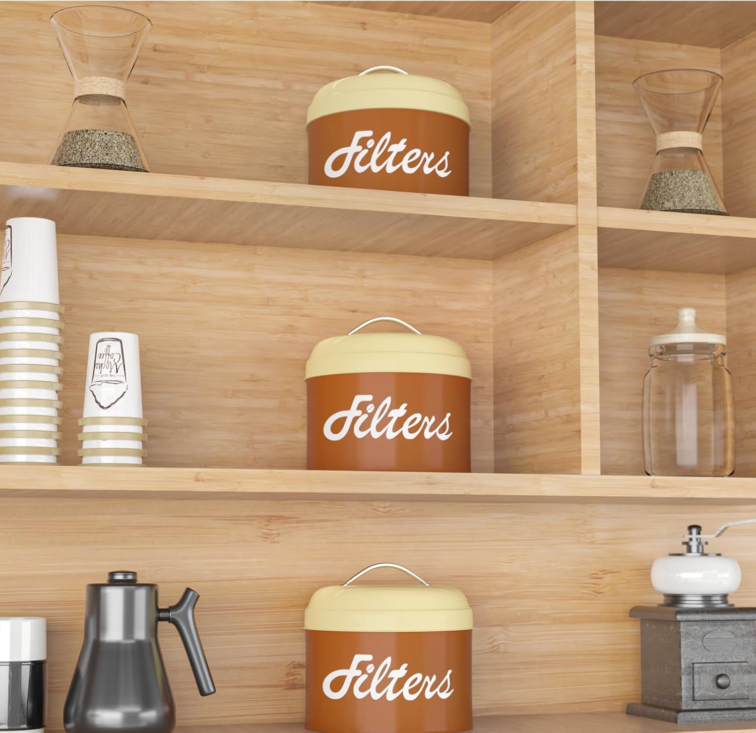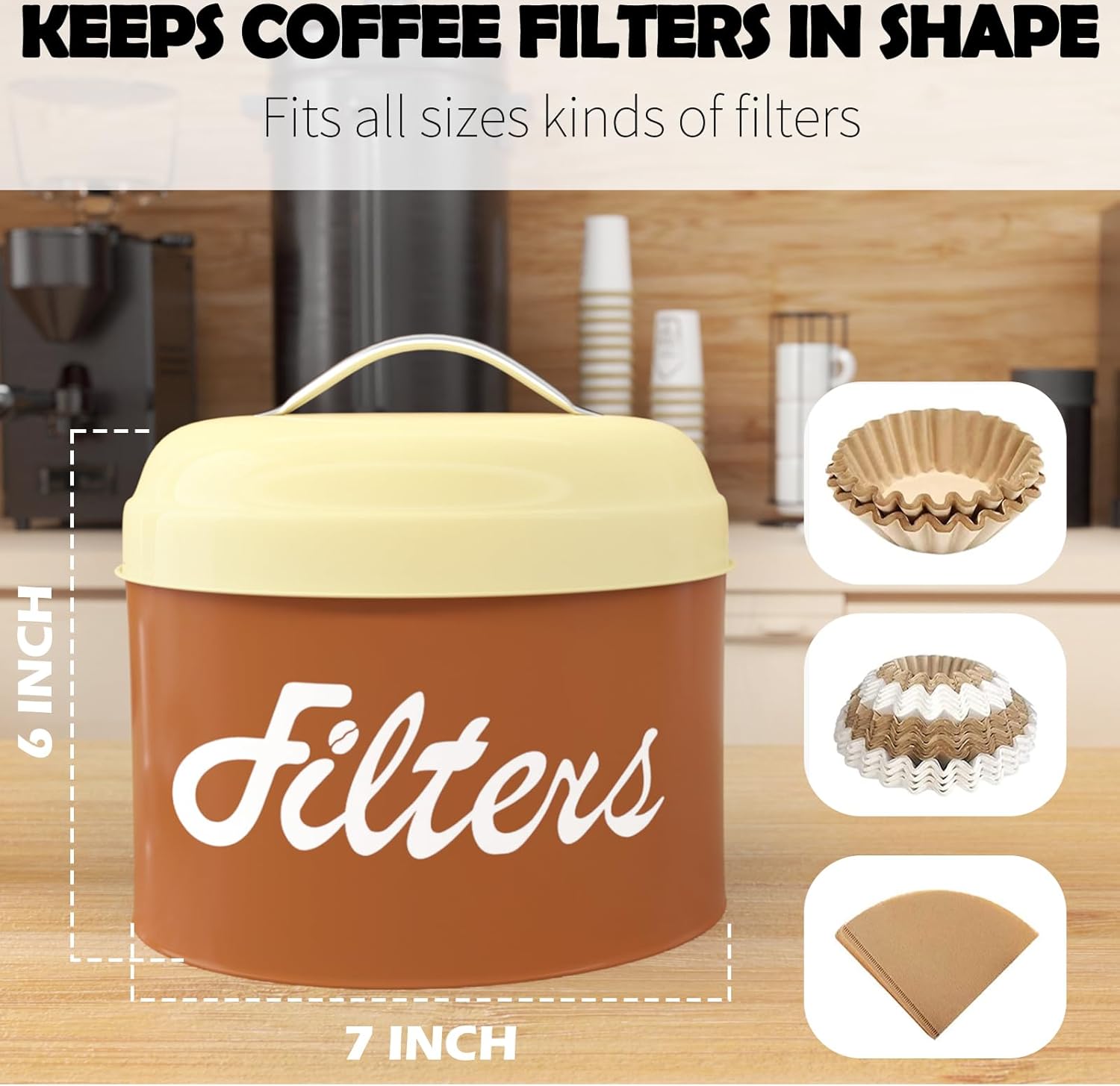 - 【BASKET COFFEE FILTER CONTAINER】 Our coffee filter holder with lid is capable of holding various sizes of round basket-shaped pleated filters commonly found in the market, a sizeable internal capacity is enough to store your daily coffee filters, it is a perfect addition to your coffee bar decor