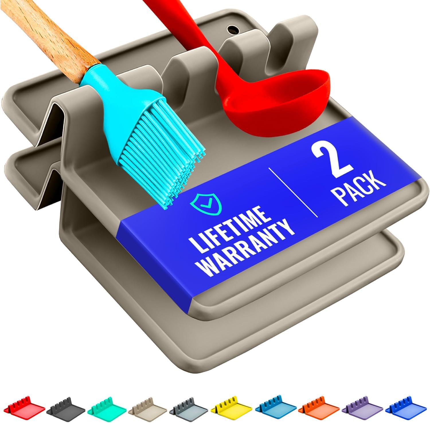- ENJOY A NICE & CLEAN COUNTERTOP: Start cooking like a pro with our universal silicone utensil rest! Maximize your counter space and minimize mess by keeping all your cooking or grilling utensils neatly organized in your kitchen workspace. You will absolutely love cooking with a Cooler Kitchen silicone spoon holder! ROTATE TWO UTENSIL RESTS! The best part about having two is being able to swap one out for another when it gets dirty!