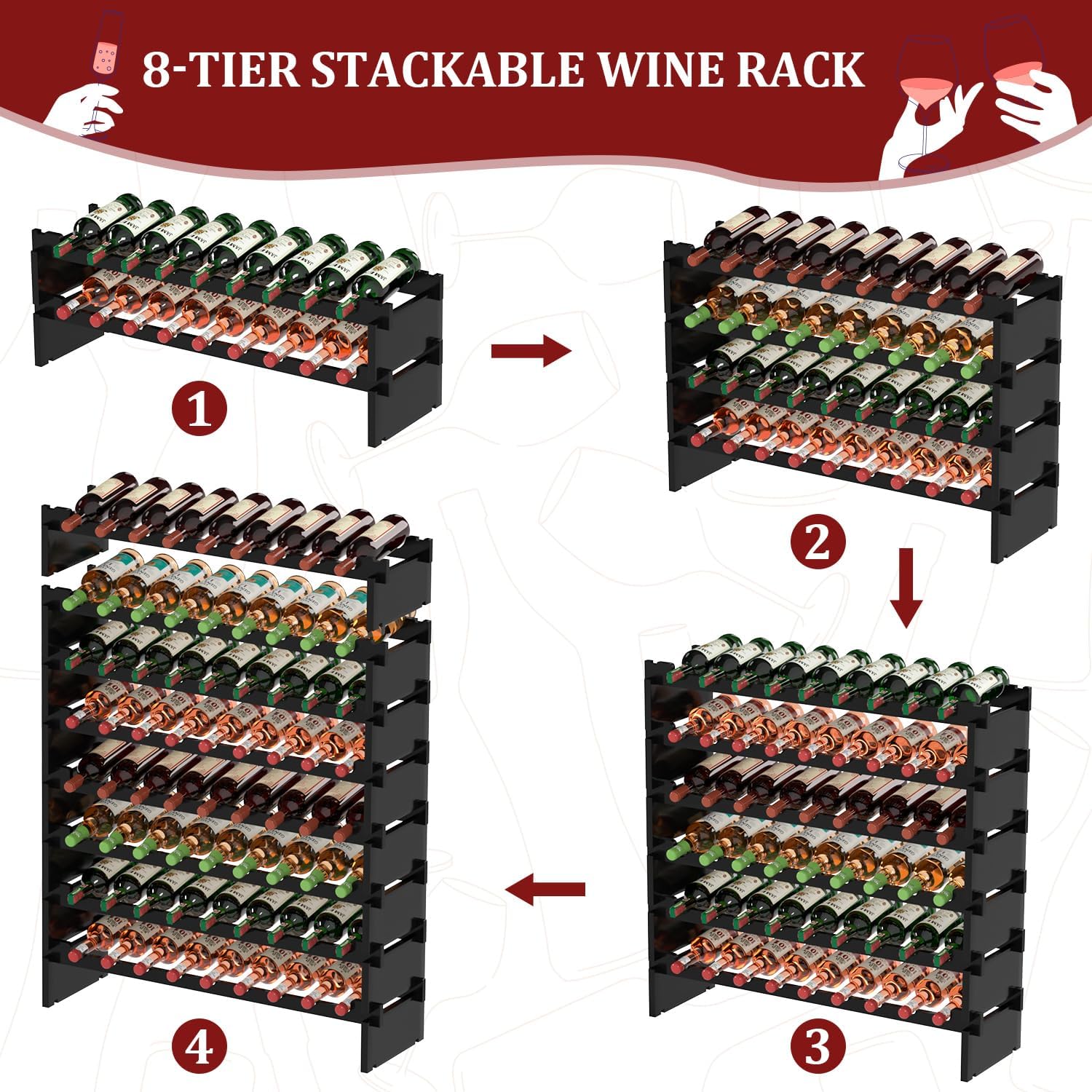 - STACKABLE WINE RACK: Each bamboo board has deep grooves and is tightly fastened to each other without loosening. The 8-tier compact design saves a lot of space and holds enough wine. You can choose single layer or stacked use.
