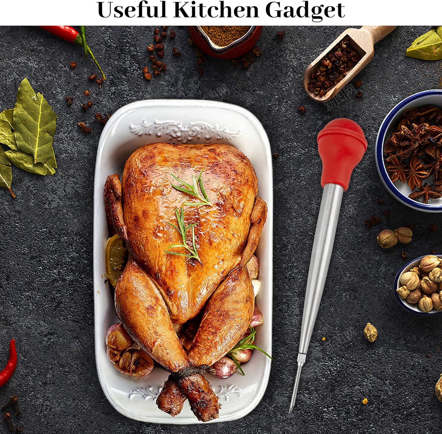 - Turkey Baster Set: The turkey baster set contains 1 bulb, 1 stainless steel tube, 1 cleaning brush, and 2 different turkey injector needles for flavor, it's a good kitchen assistant for your next Thanksgiving or Christmas dinner.