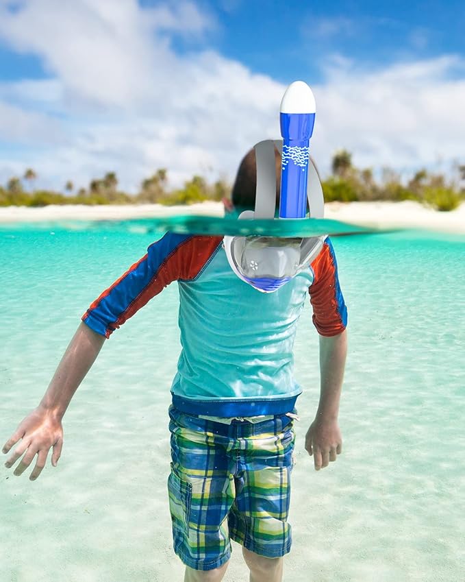• 【Full Face Snokel Mask For Kids】Be made of hard PC, snorkel mask kids anti fog is non-toxic and odourless; wrapped by soft and thick silicone, it protects your safety and won’t make you headache for longtime wearing; free breath, full face design allows you to breath comfortably through nose and mouth during snorkeling it's safe for kids to use.