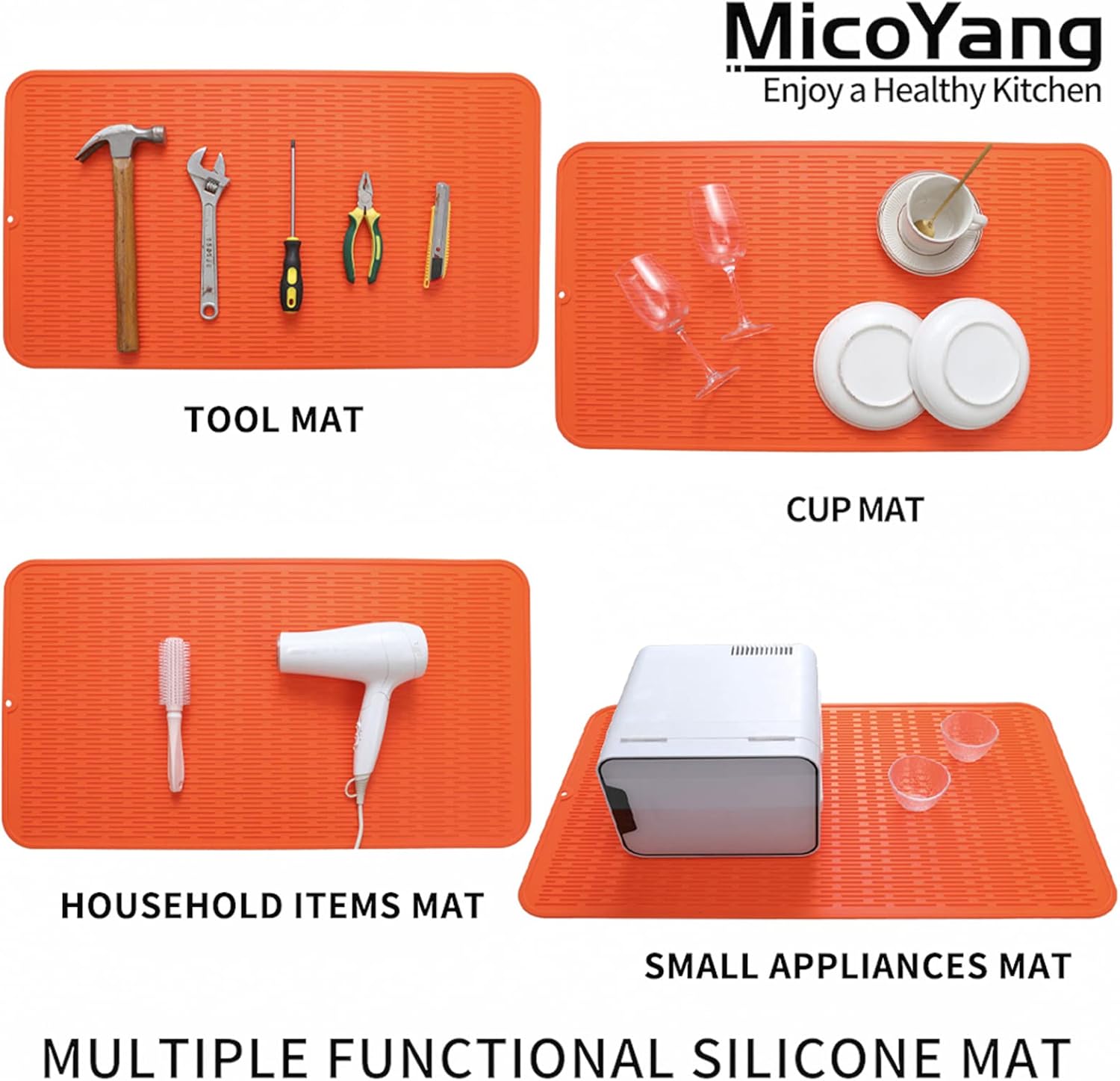 Silicone Dish Drying Mat for Multiple Usage,Easy clean,Eco-friendly,Heat-resistant Silicone Mat for Kitchen Counter or Sink,Refrigerator or Drawer Liner Orange 4XL 32 inches x 18 inches