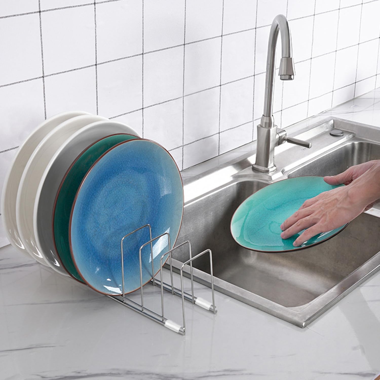 2PCS Dish Rack, Stainless Steel Small Bowl Drainer, Pot Lid Holder, Plate Organizer for Cabinet for Plates Cutting Boards, Bakeware, Cooling Racks, Pots & Pans, Chrome