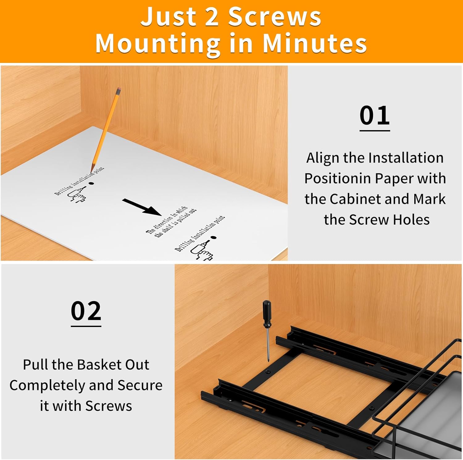 - Sliding System Design and Wide Use: This cabinet spice rack comes with a 2 slide system that gives you a quiet and smooth glide every time you use it. If you are tired of searching for spices in a cluttered cabinet, then this slide out spice organizer is the best choice for you. The 1 tier spice rack is designed to store standard spice bottles in addition to non-standard spices, store more types of spices, beverages, foods, snacks, etc. depending on the height of your cabinet.
