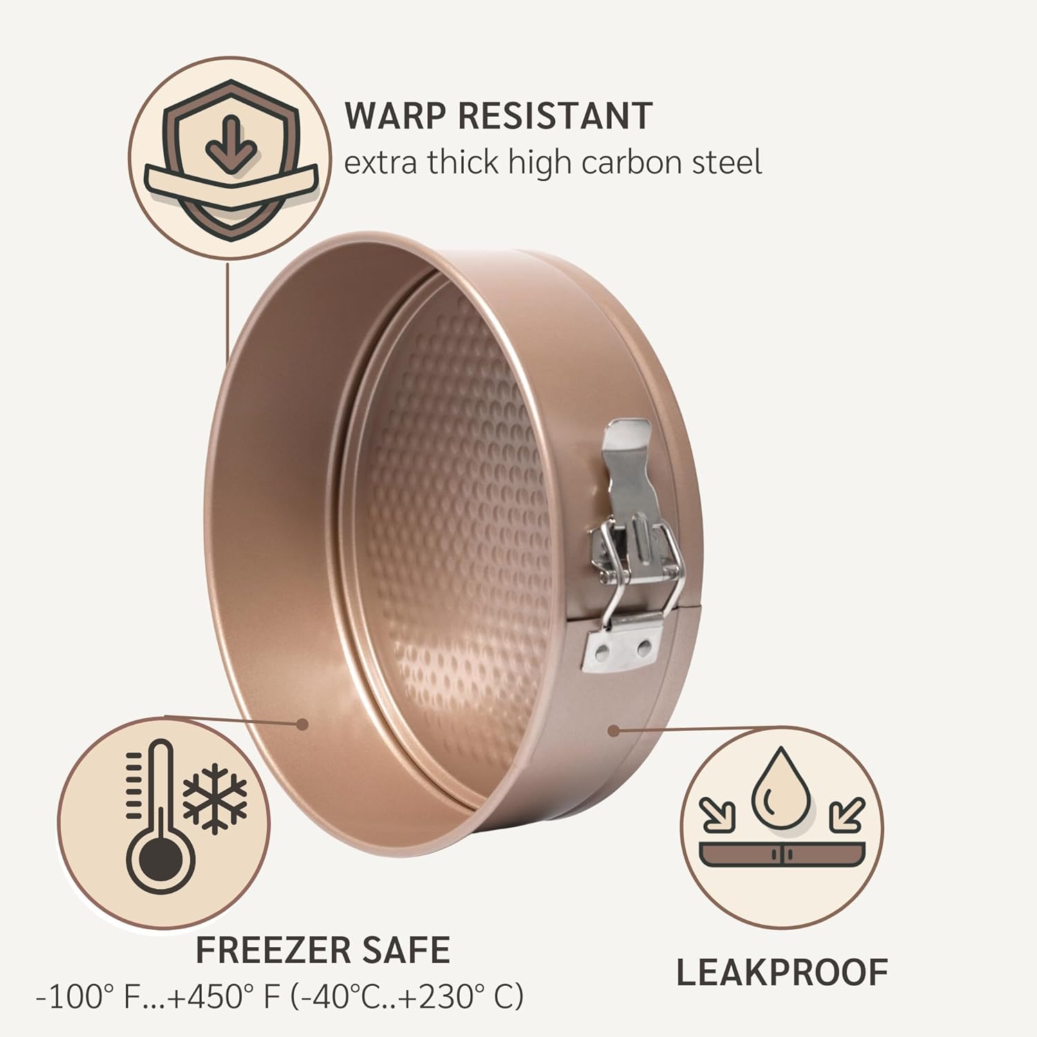 - π Truly Nonstick for Easy Release β the superb nonstick coating guarantees quick and easy release of baked goods, making it simple to remove your cheesecake or cake without sticking. The springform design is easy to open and close for a picture perfect result!