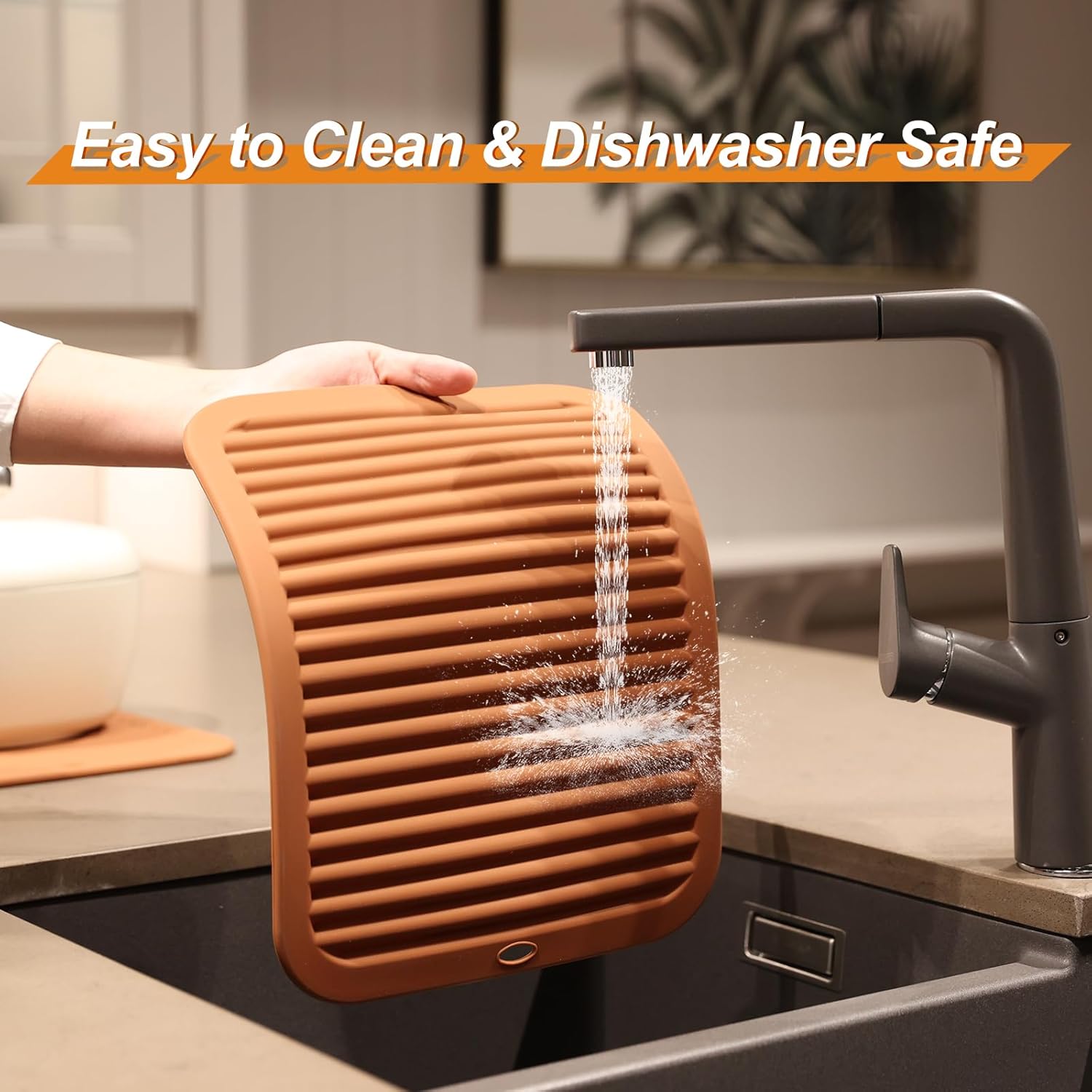 - EASY TO CLEAN & DISHWASHER SAFE - These trivets for quartz countertops are waterproof, plus stain and odor resistant. These kitchen hot pads are safe to pop in the dishwasher. It is non-stick and easy to clean. Roll up or hang on hook, save space. Experience a more convenient kitchen environment with these silicone trivet.