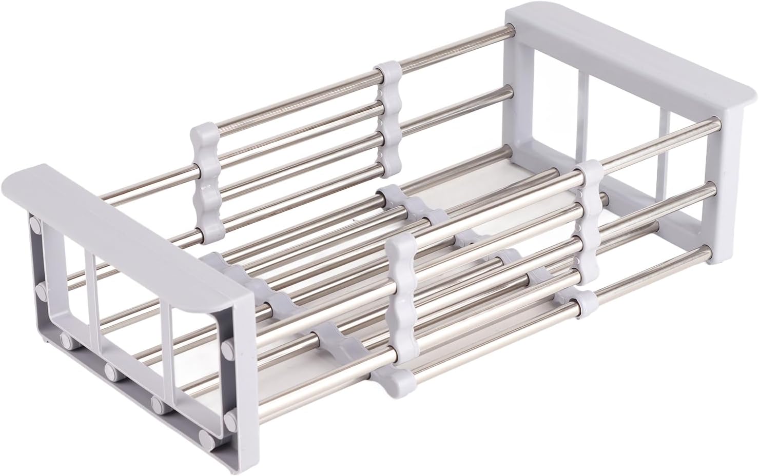 - Draining rack: Over sink dish drying rack, kitchen sink accessories, retractable stainless steel sink strainer with adjustable bars fits over the sink, on countertop or in the sink, sink dish drainer only takes up only a fraction of the space, our dish drying racks is suitable for most kitchen sink