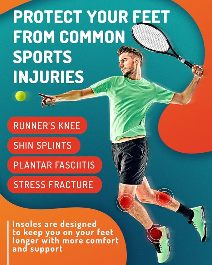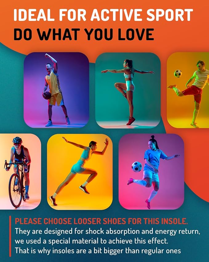 • Shock absorption: Athletic insoles for men with strategically placed gel pads; absorb impact; enhance performance; reduce fatigue during intense activities