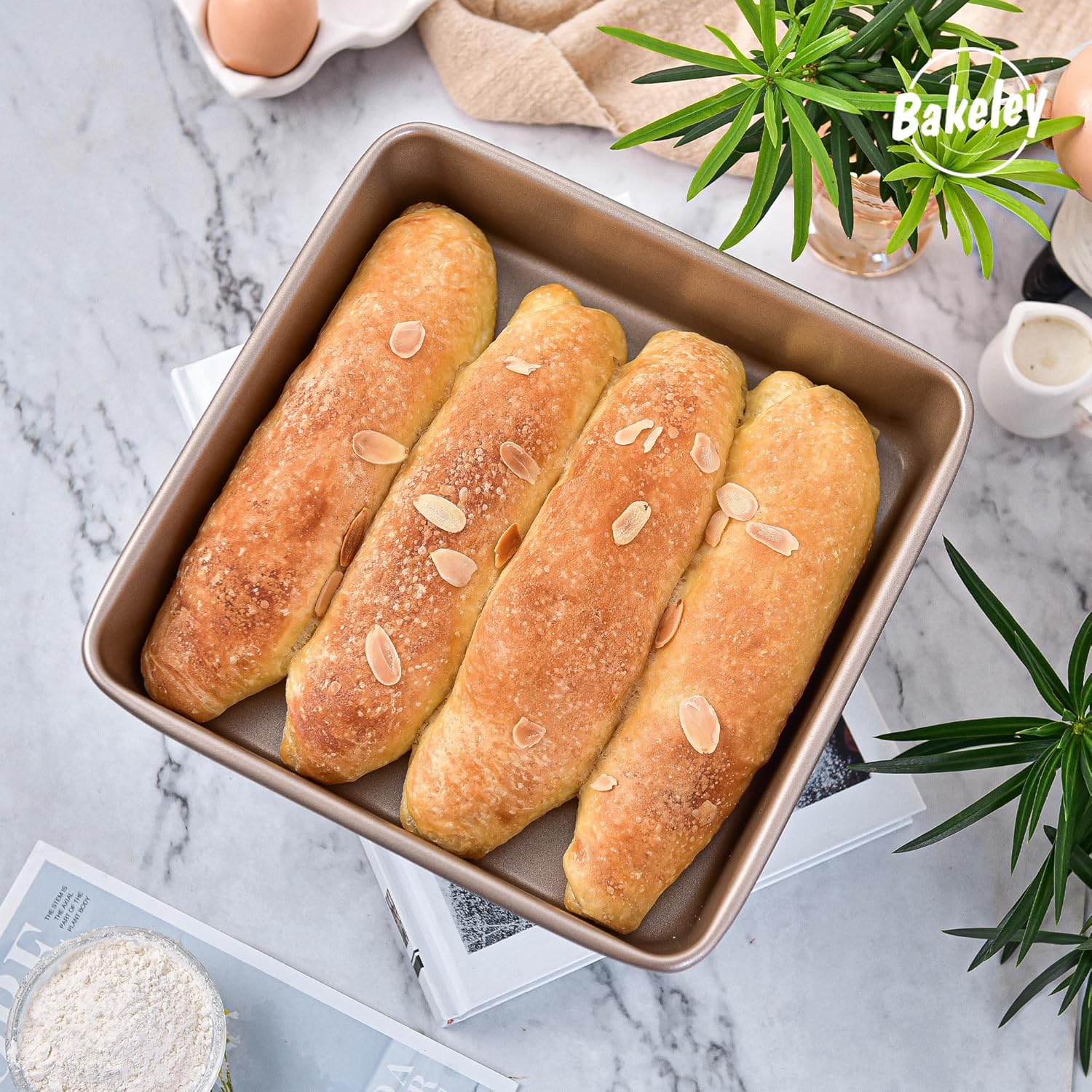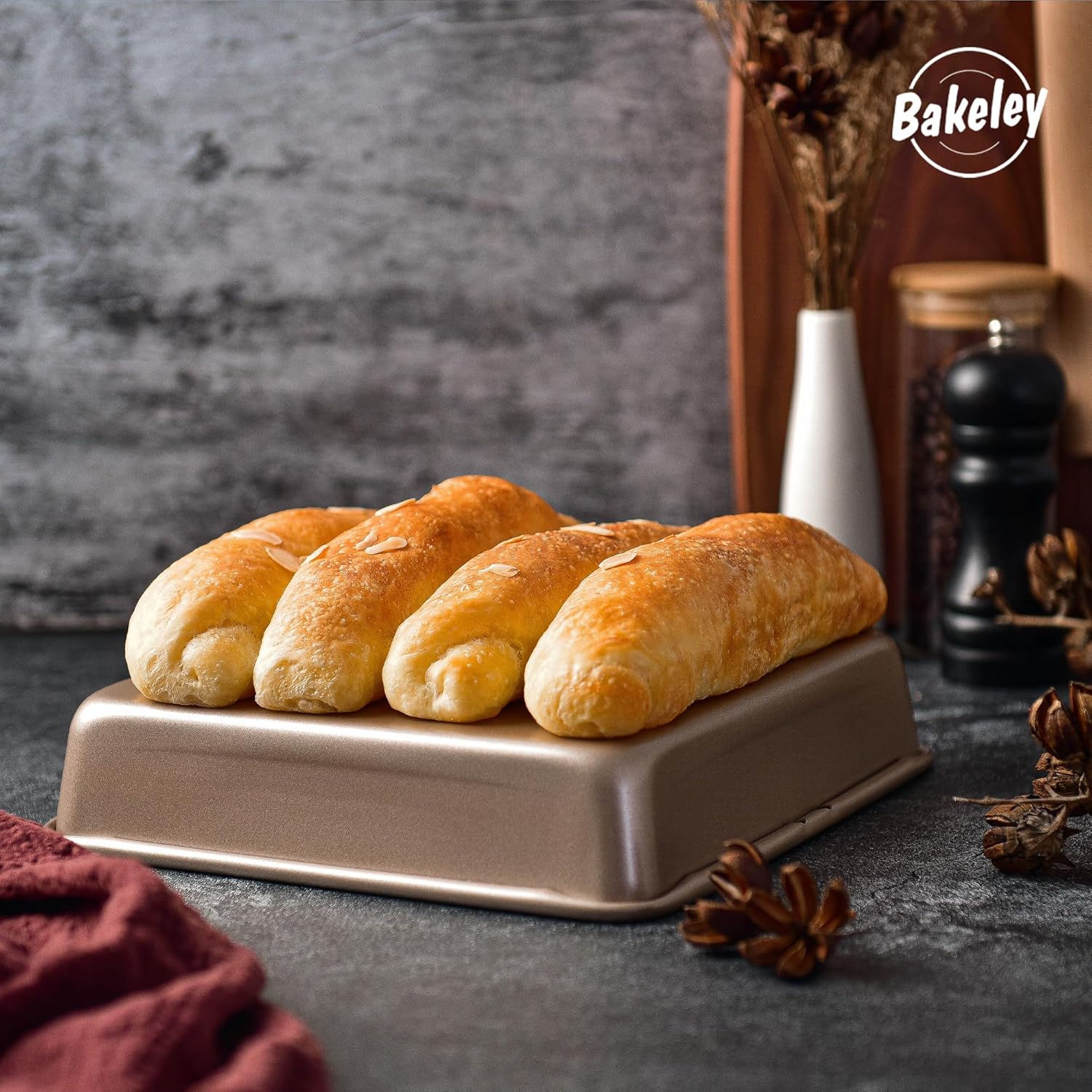 - Heavy Duty Baking Pan: Bakeley 9x9 Baking Pan adopts durable 0.8mm reinforced carbon steel (PTFE & PFOA FREE) resists bending at 450°F/230°C, the bottom of the baking tray will not deform and the edges will not curl at high temperatures in the oven