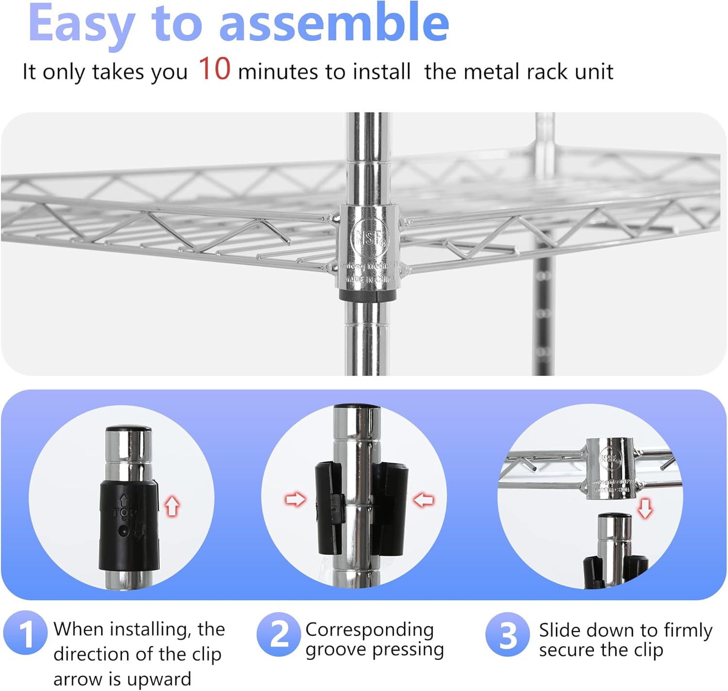 - Durable and sturdy: This shelf is made of heavy-duty steel wire, which is durable and resistant to dirt accumulation and corrosion. After proper assembly, the maximum weight of each shelf layer can reach 150 pounds, and the maximum total weight of the entire shelf can reach 450 pounds.