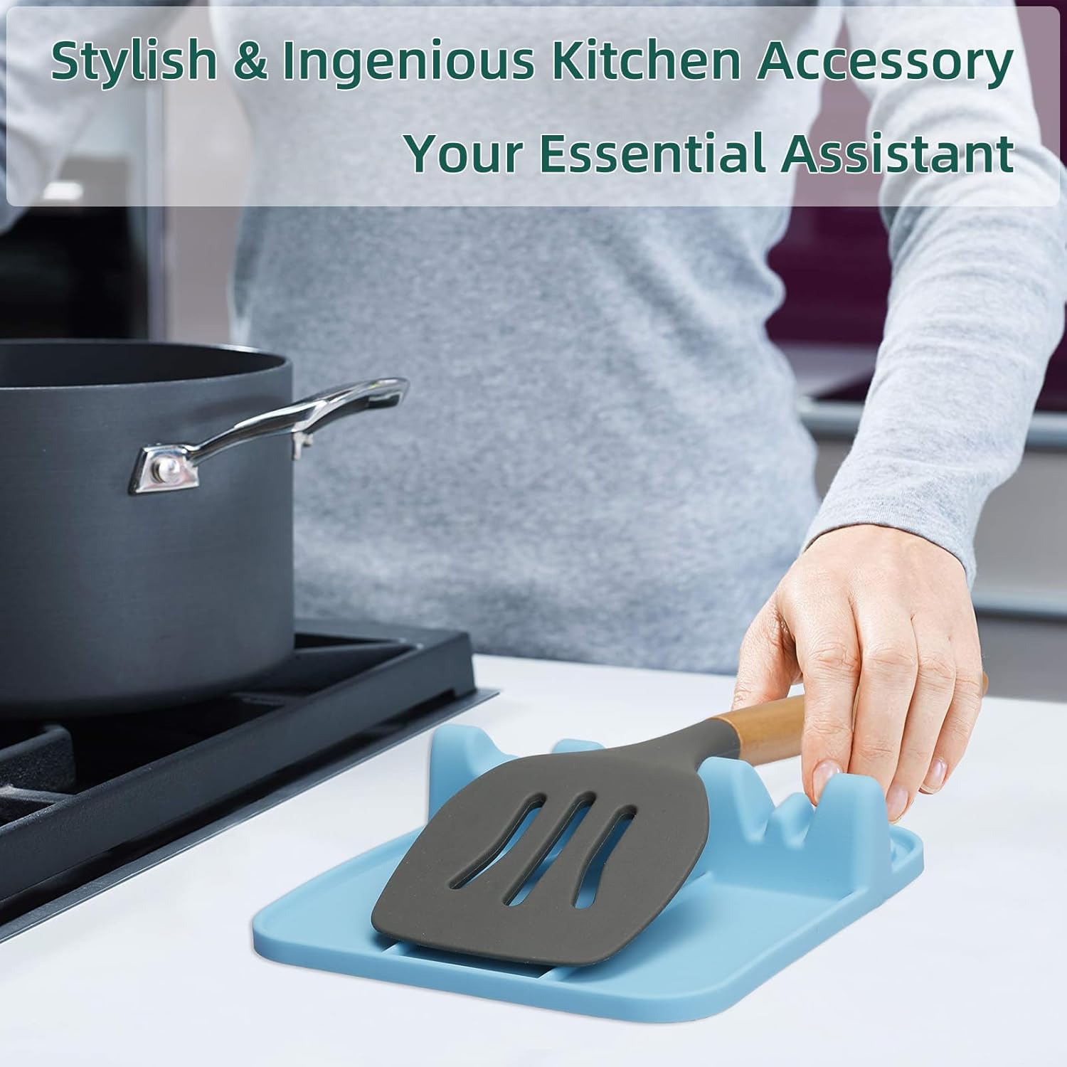 - 【UPGRADED REST GROOVES, MULTIPLE USES】Based on the original, this Silicone Spoon Rest has three newly designed grooves. Not only can be used as a spoon rest for stove or a kitchen utensil holder for whisk/colander/kitchen tongs/brush/pasta fork/skimmer, but can be taken out as a lightweight rest for barbecue clips. From the most common usage of our customers, it is more like an exquisite and simple spatula holder, ladle rest and coffee spoon rest.