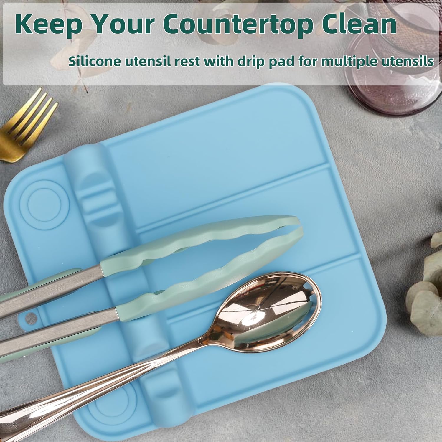 - 【HEALTHY & HIGH-QUALITY MATERIALS】This spoon rest is made of 100% food-grade silicone. Compared with plastic or wooden, it’s heat-resistant and eco-friendlier. BPA-free, non-toxic, and safe for food. This bright lake blue spoon holder has a longer service life, durable and flexible. With two sucker buttons, it won't slip or slide while in use and can prevent the soup on the spoon or spatula from dripping on the countertop, ensuring a clean and tidy kitchen countertop.