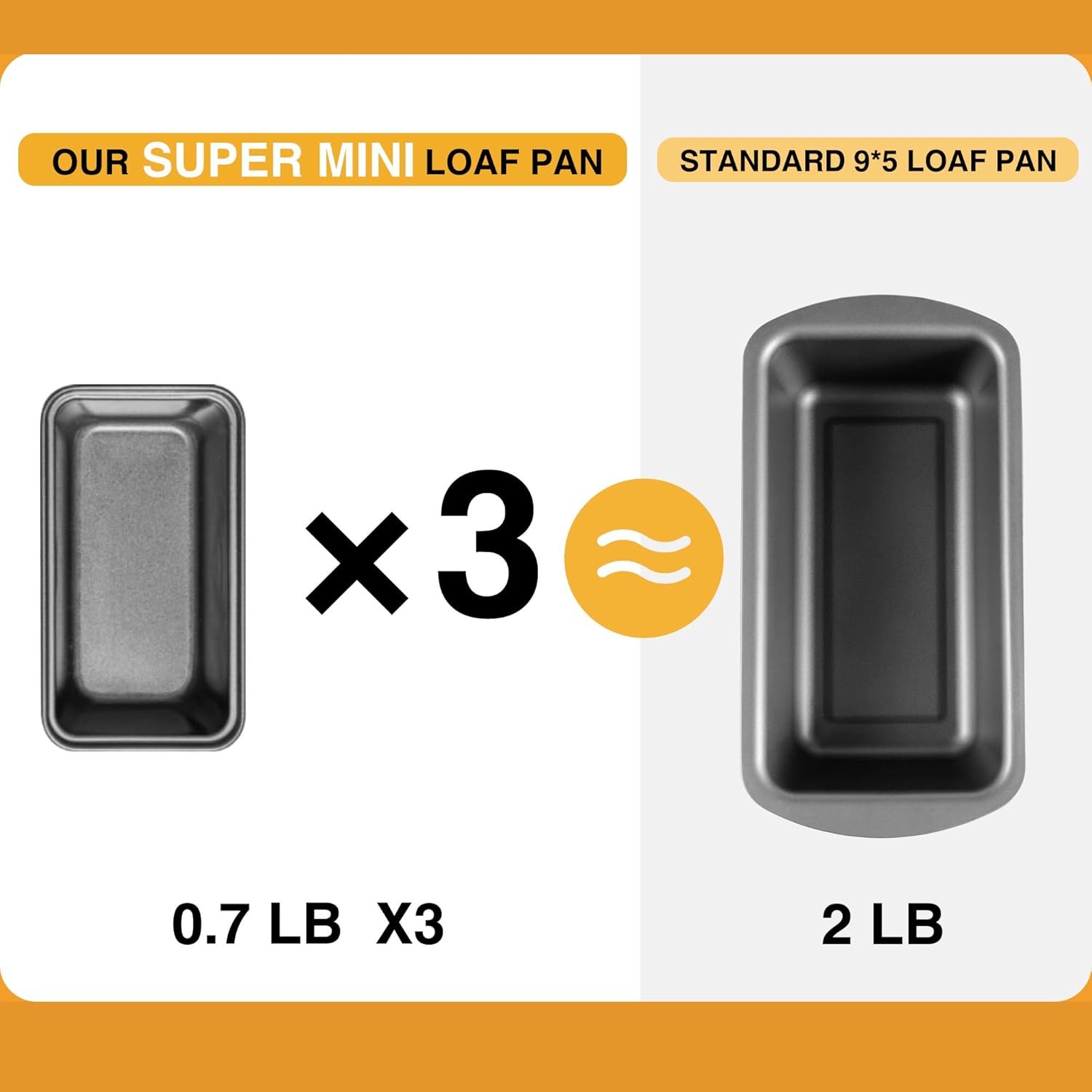 - ONE-PIECE MOLDING - Our mini bread loaf pan set has a one-piece design to reduce welding points, thus effectively preventing holes and edges from rusting. Extended service life.