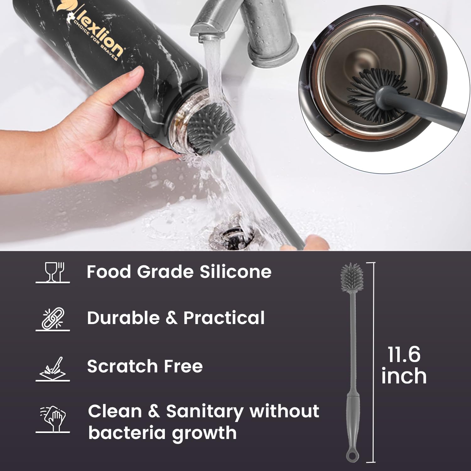 - ✅ SILICON CLEANER BRUSH - Our silicone bottle cleaner brush repels unpleasant odors, and stains, - unlike sponge and nylon brushes - preventing nasty stain build-up so more healthier for your family. It cleans all nooks, and crannies and reaches all the areas of your insulated water bottle 22 oz, and tea/fruit infusers. You will no longer worry about the smelly sponge bristles. The bristles of the thermos water bottle 22 oz brush always keep their shape and it is scratch-free.