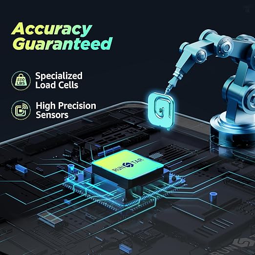 • Where Capacity Meets Precision Equipped with specialized load cells, this RunStar digital scale up to an extra high capacity (550lb /250kg). Which have passed 100,000 times sensor performance tests, delivering accurate readings in 1lb /0.5kg increments
