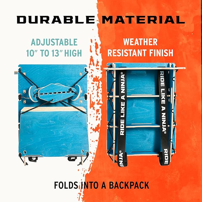 • Durable Material - Made from extremely durable plywood that’s treated with a weather-resistant finish; Precision CNC cutting gives you a ramp that’s both strong and precise; When you’re done, the ramp folds into a compact size that’s easy to carry with the integrated backpack straps.