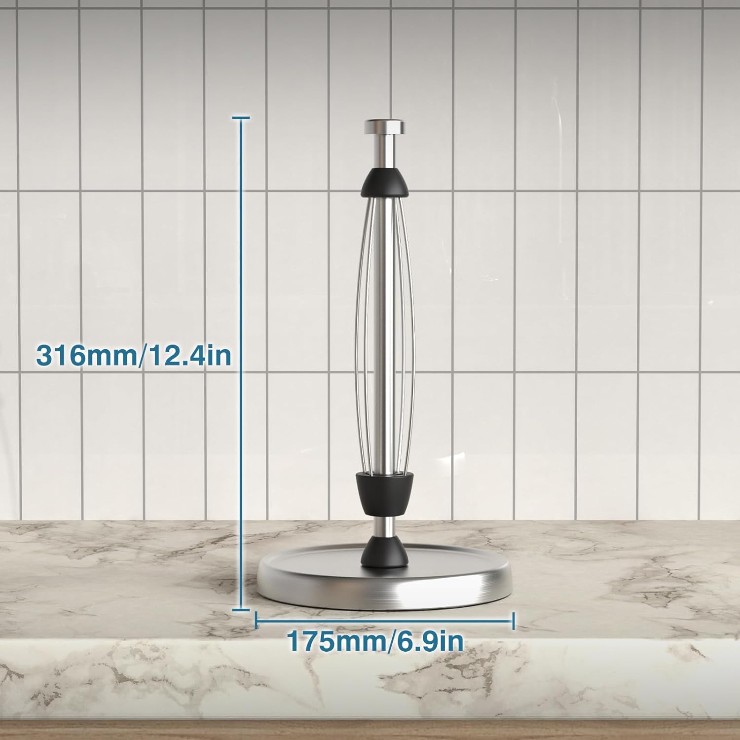 - HIGH QUALITY STAINLESS STEEL:Kitchen paper towel holder is made of high-quality stainless steel, durable and enable long-term use. Unique design add a modern aesthetic to your home and kitchen. Kitchen must-haves!