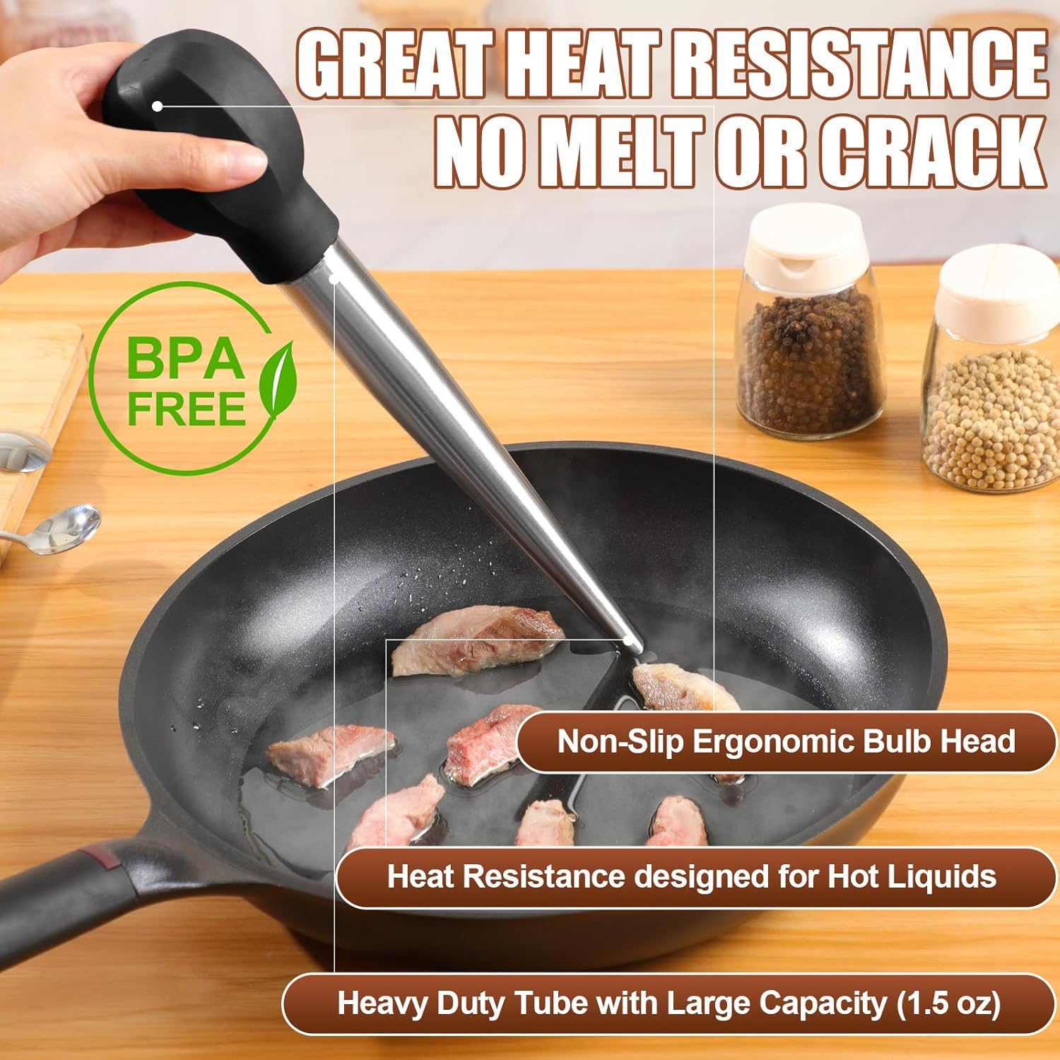 - ERGONOMIC STREAMLINE BULB HEAD: Our powerful non-slip bulb head is designed to fit perfectly in your hand, offering excellent suction power. With heat resistance up to 160β/320β, it ensures safety and stability. Flavor your delicious homemade turkey, chicken, or pot roast with ease and comfort.