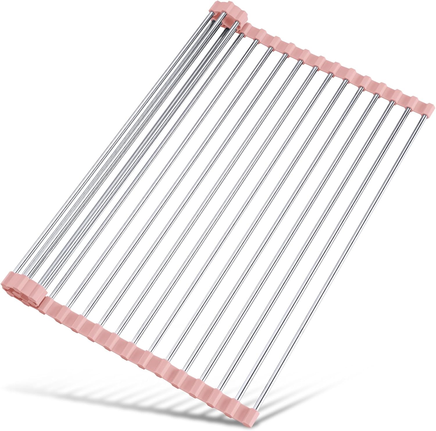 Tomorotec 17.7" x 12.5" Roll Up Dish Drying Rack Over Sink Drying Rack Sink Cover Kitchen Sink Accessories Gadget Multipurpose Organizer Foldable Stainless Steel Drainer