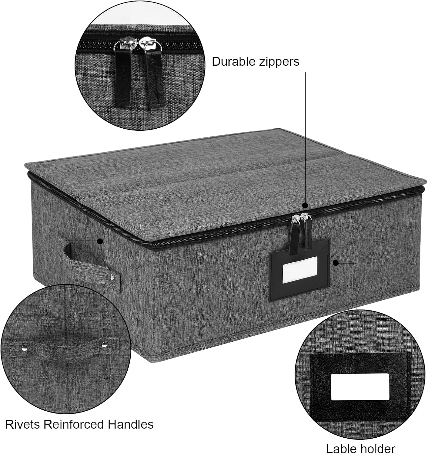 Cup and Mug Storage Box 2Pack, China Storage Containers for 12 Tea Cups or Coffee Mugs with Zipper Lid and Rivet Reinforced Handles, Hard Shell and Stackable (Black)