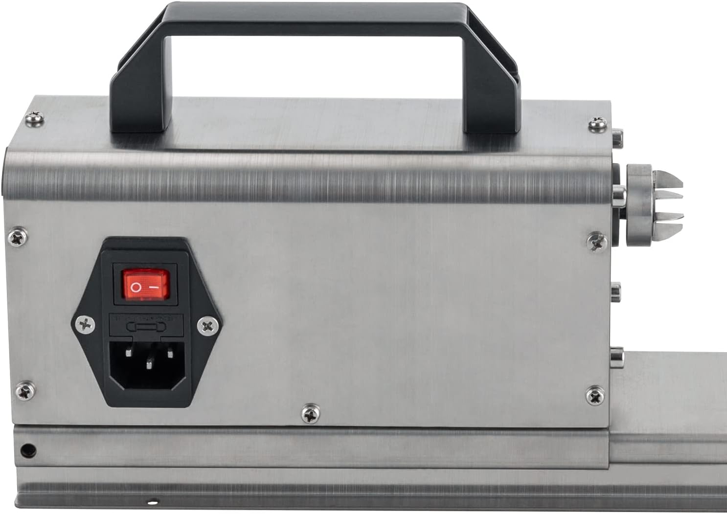 - [PREMIUM MATERIAL] The rotary electric potato spiralizer is made of high quality stainless steel. 120 mm stainless steel needles can easily pierce the center of the potatoes, and the sharp 304 stainless steel blades can easily process potatoes and more easily rotate and cut vegetables. You can wipe the dirt off the machine with a cloth thanks to its smooth surface that is polished.