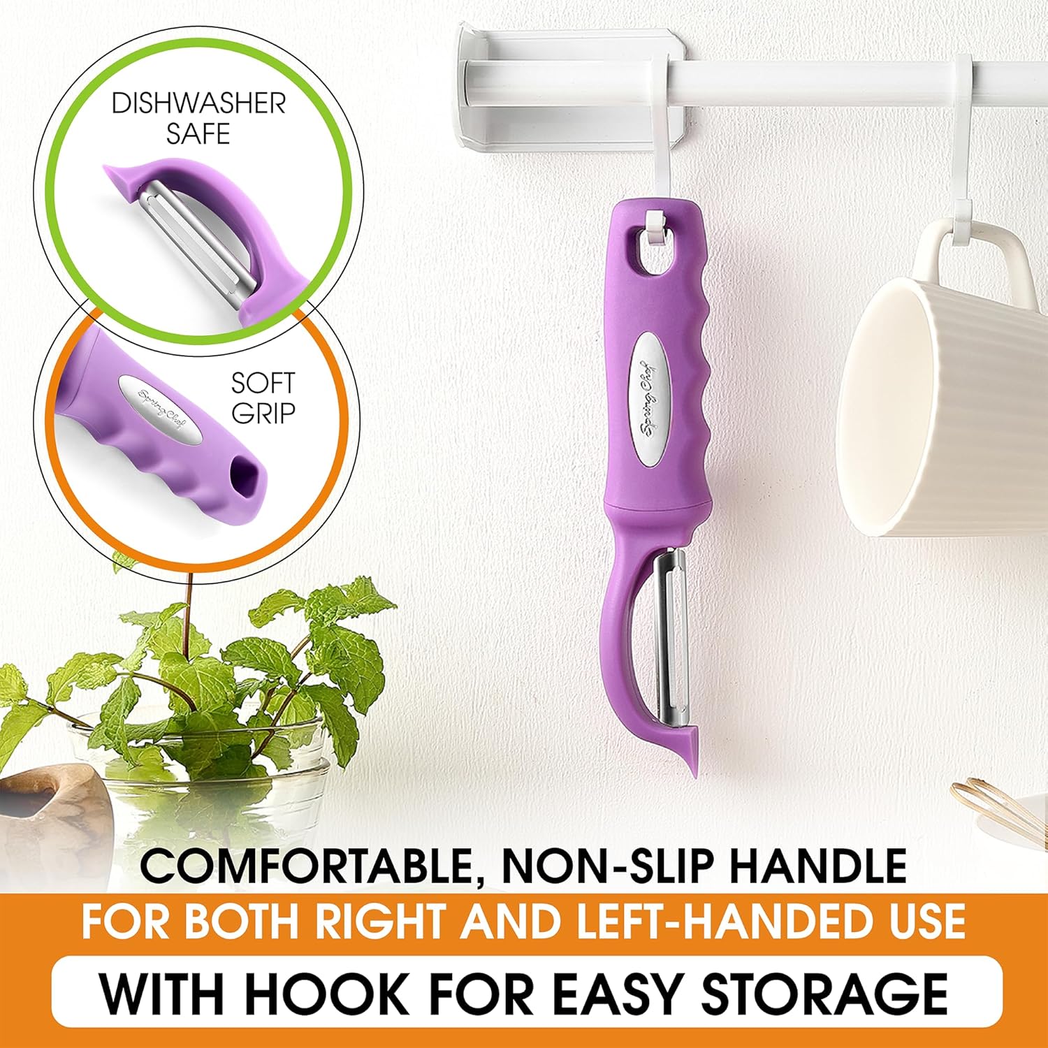 Spring Chef Premium Swivel Vegetable Peeler, Comfortable Handle and Ultra Sharp Stainless Steel Blades - Perfect Kitchen Peeler For Veggie, Fruit, Potato, Carrot, Apple - Orchid