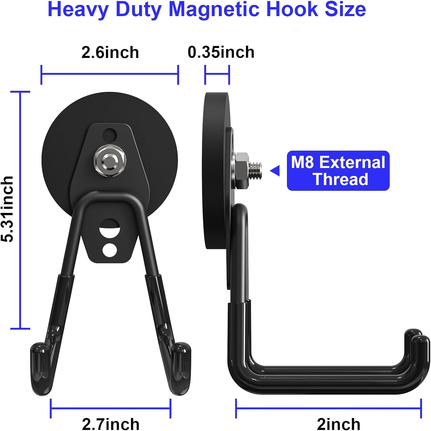 - Sturdy structure:This heavy duty large garage magnetic hooks are made of a 2.6inch magnet base magnet with 6 super strong magnets inside., strong load-bearing and providing a sturdy storage solution. It is a good choice for storing heavy objects.
