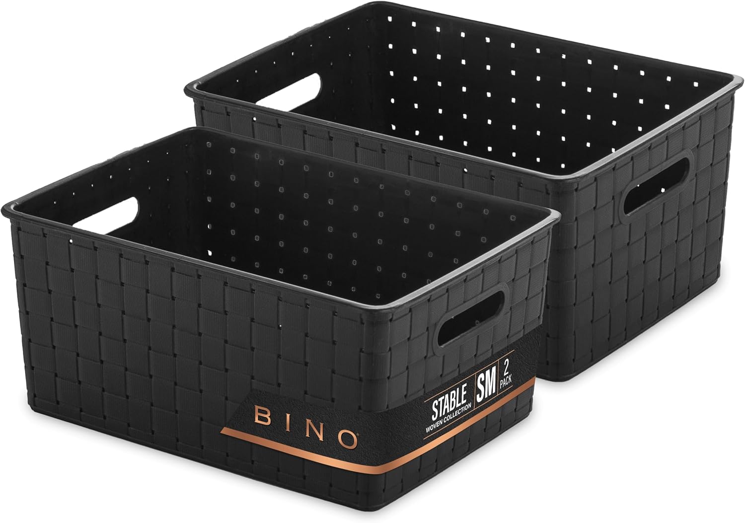 BINO | Plastic Storage Baskets Small - Black | THE STABLE COLLECTION | Multi-Use Storage | Rectangular Cabinet Organizer | Baskets For Organizing with Handles | Home Office Organization and Storage
