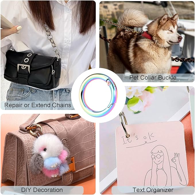 • Creative Matching: Round keyring clip can decorate and replace most items, such as key ring, keychain hardware, small dog leashes, dog collar tags, purse hardware, handbag shoulder bag strap, exercise band, bag tassel, keychain clip and outdoor paracord keychain lanyard or match with your desired hanging crafts or decorations, carabiner o ring is a great DIY accessory, can be given as a gift to a friend