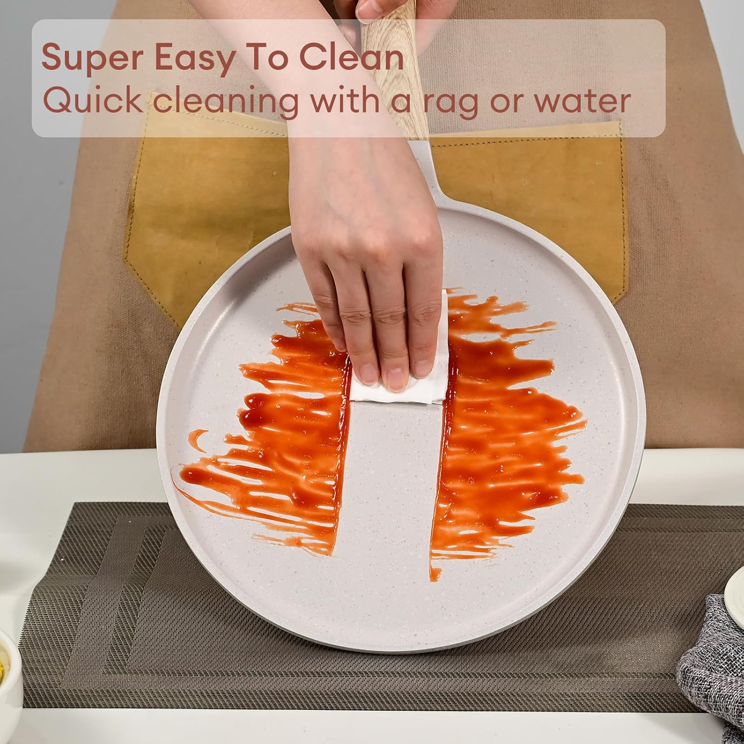 JEETEE Crepe Pan Nonstick, 9.5 inch Comales Para Tortillas Griddle Pan for Stove Top, Granite Coating Flat Pancake Pan Dosa Tawa, PFOA FREE and Induction Compatible (Beige)