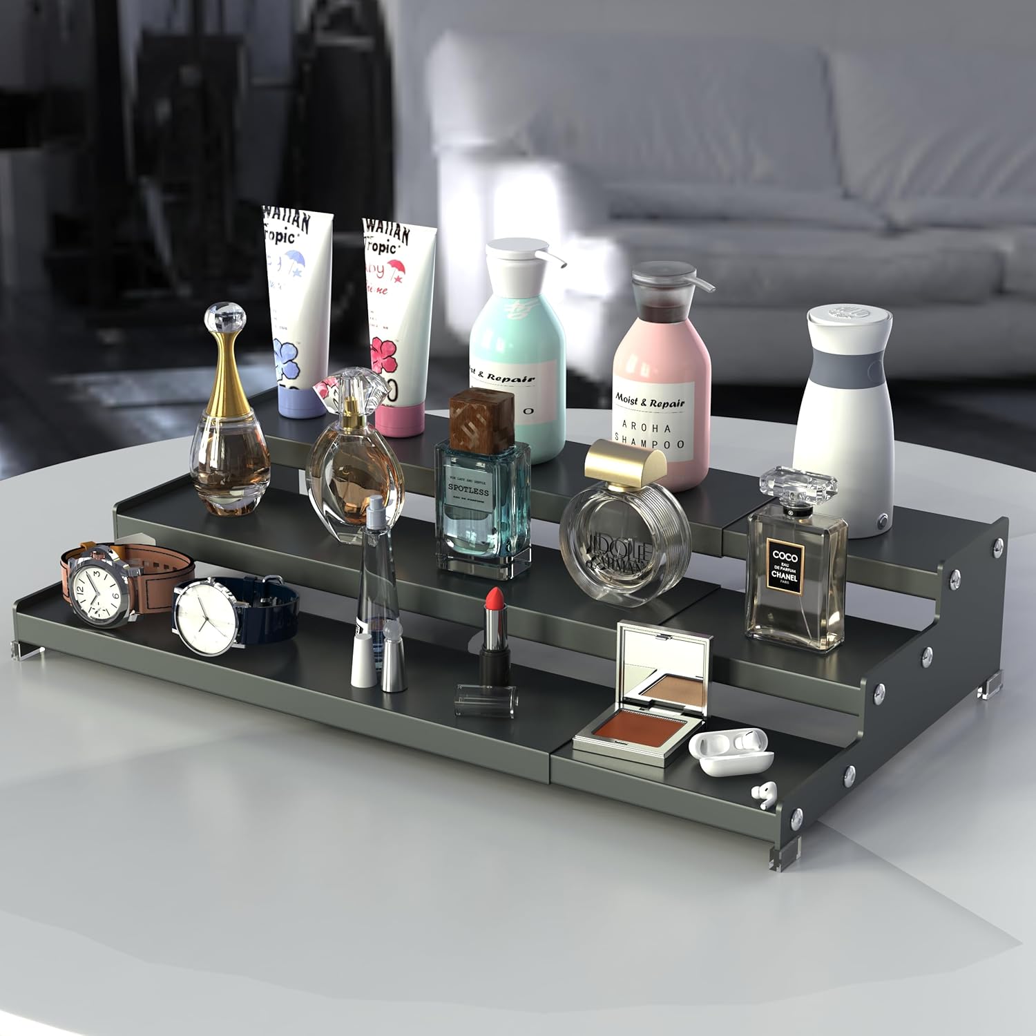 - ⭐[Organize and Save your space]Stepped design to provide you with both space and visibility.you can get what you need quickly and clearly.Create extra space-use it throughout the home; Save for storing and organizing nail polish,perfume, lotions,body sprays,makeup,lipstick and other cosmetics in the bathroom and your other kitchen cabinets.