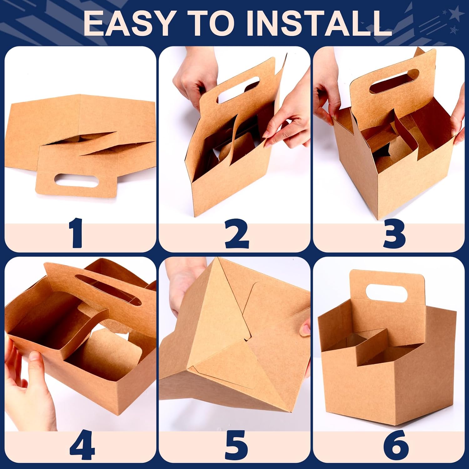 - Package Includes: you will get 50 pieces of 5.5 inch beer bottle carrier boxes, which can meet the needs of carrying a large amount of beer; The kraft drink carriers are soft and comfortable to touch without scratching your hands, with moderate size and light weight, easy to carry without causing burden, with classic and elegant appearance, stylish and versatile