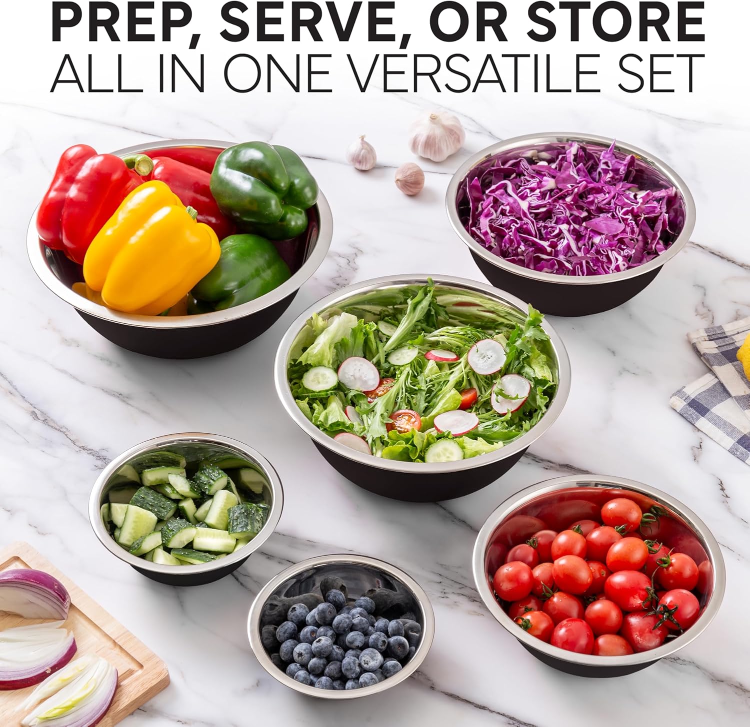 - Multiple Sizes - From mixing doughs, to prepper salad dressings, this bowl set has a size perfect for every dish.