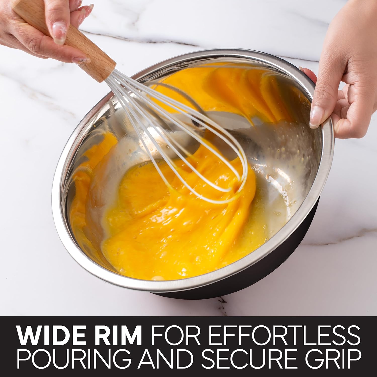 - Wide Rim- For a mess free cooking session, choose our bowls with a wide rim and lip. These features allow messy ingredients like flour, sugar and oil to be added directly into the bowl easily.