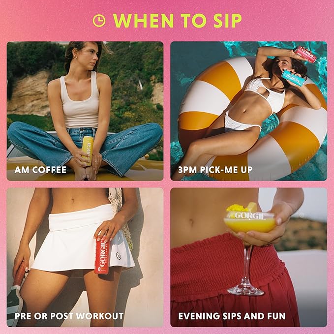 • MIX IT UP: Our bevs have a playful side too! GORGIE's light and natural flavors make them a great mixer for cocktails and mocktails, providing an energizing twist to your favorite drinks.