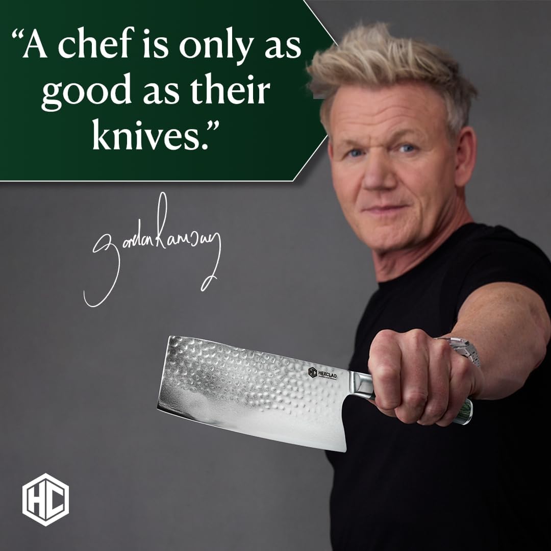 HexClad Cleaver Knife, 7-Inch Japanese Damascus Stainless Steel Blade, Pakkawood Handle