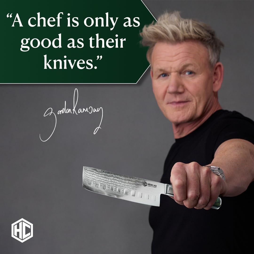 HexClad Nakiri Knife, 6.5-Inch Japanese Damascus Stainless Steel Blade, Pakkawood Handle