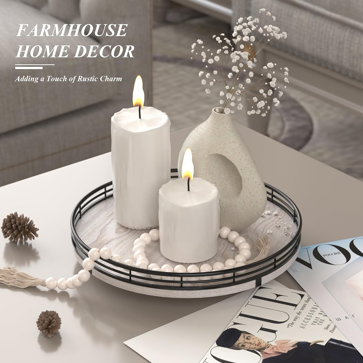 - πππππππ ππππππππ: Our farmhouse lazy Susan made of natural ash wood veneer, sturdy, durable, and beautiful in texture. It is known for its durability, strength, and aesthetic, as well as it can handle heavy use and resist wear and tear. Widely used as coffee table decor, kitchen decor, centerpiece table decortations.