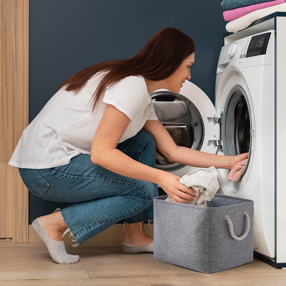 - CARE TIP - Collapsible design for space saving, before use to get the wrinkles out the fabric storage bin: either stuff the fabric storage cubes with blankets and pillows for a few days and the baskets will take the shape , or steam iron them at low-heat setting; dusting the basket with a soft dry cloth is recommended. Spot clean with light soapy water when needed. Not recommended to machine wash for there are metal frame.