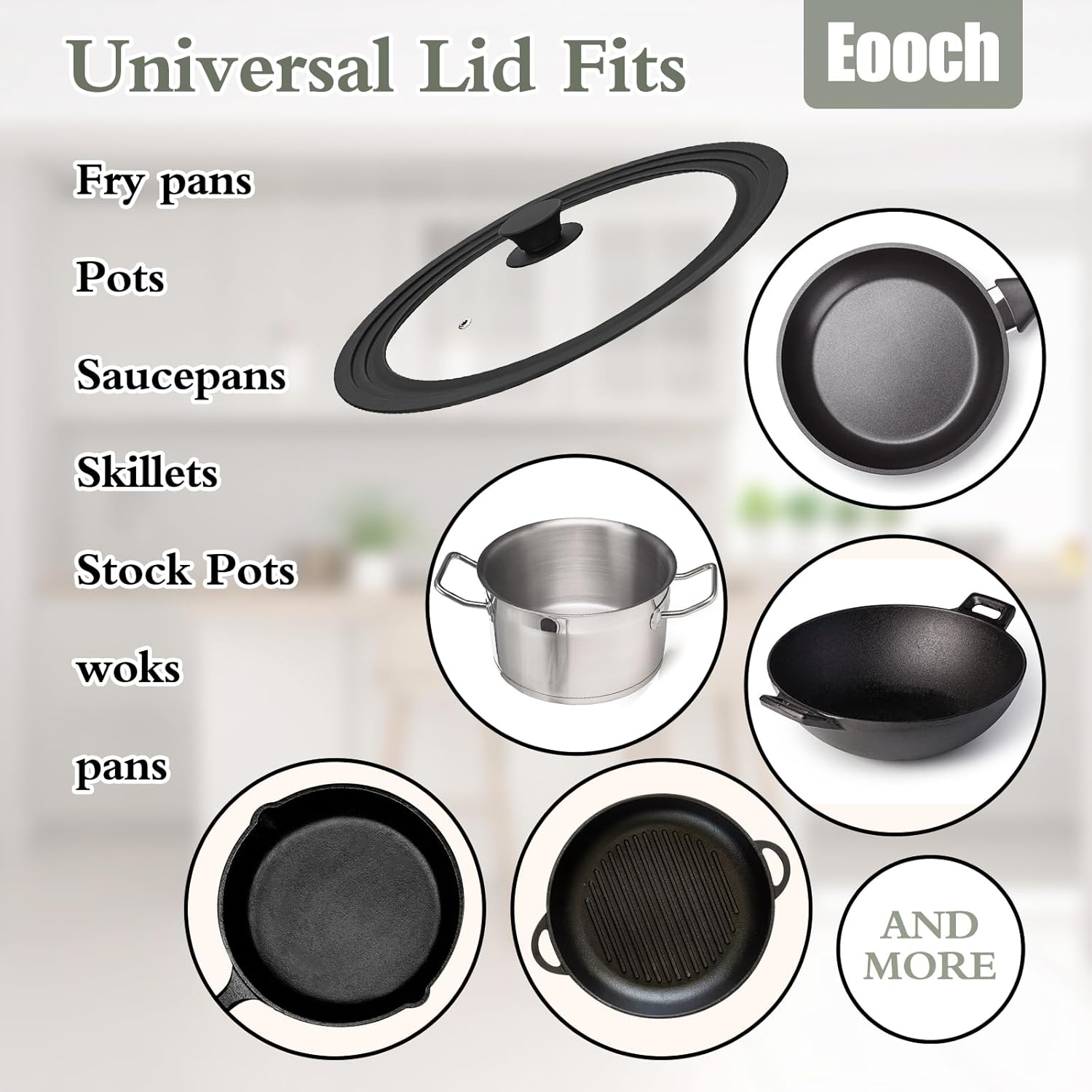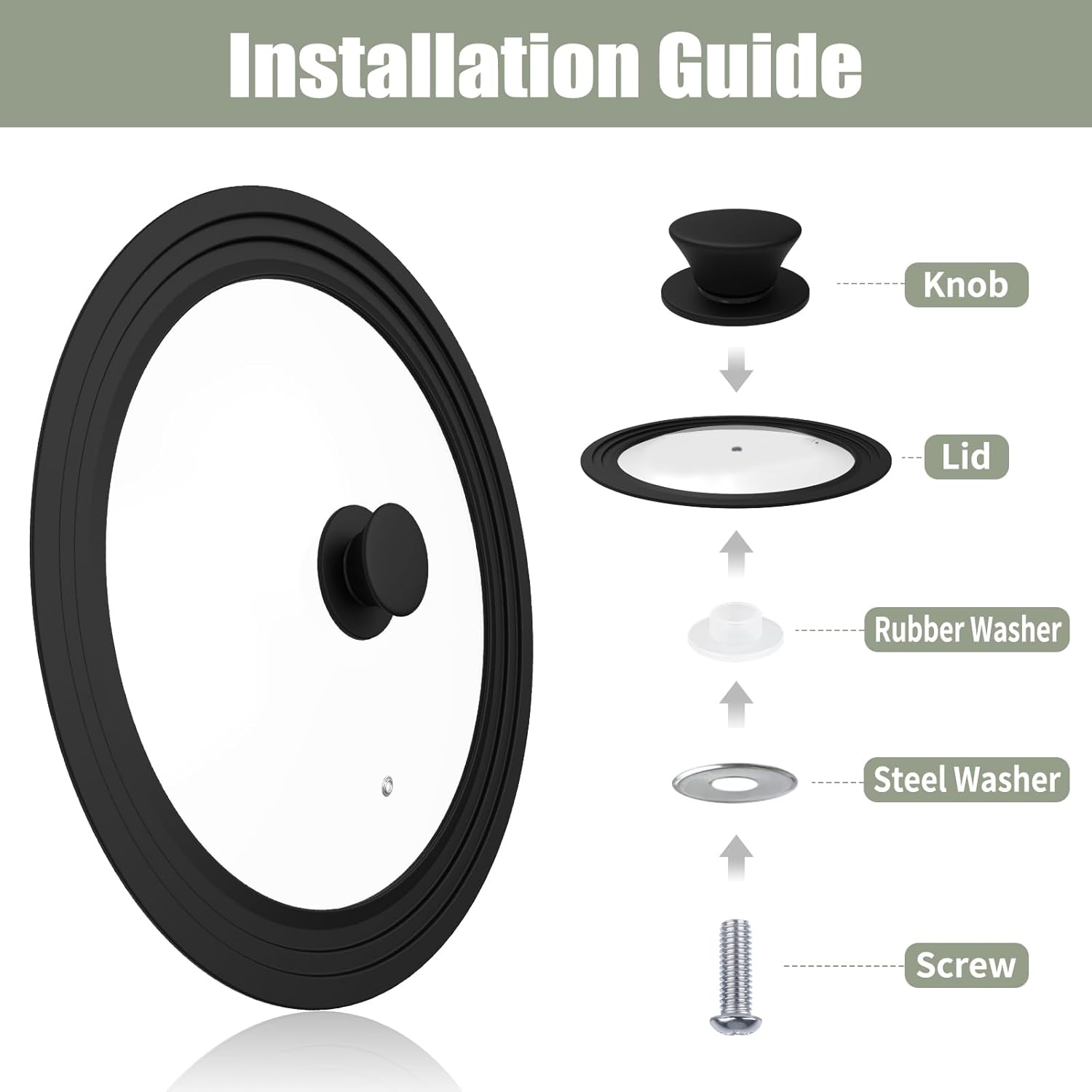 - 【STURDY GLASS & FOOD GRADE SILICONE】Pot lid is made of premium tempered glass and food grade silicone. Safer, stronger than normal glass and no metal rusting. The silicone outer ring and anti-slip knob are heat-resistant up to 428°F.