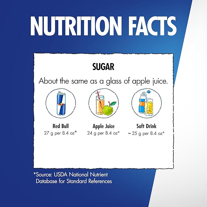 • Each 8.4 fl oz can contains 80mg of caffeine which helps to increase alertness, no more than 28g of real sugar similar to a glass of apple juice of the same size, and no more than 120 calories