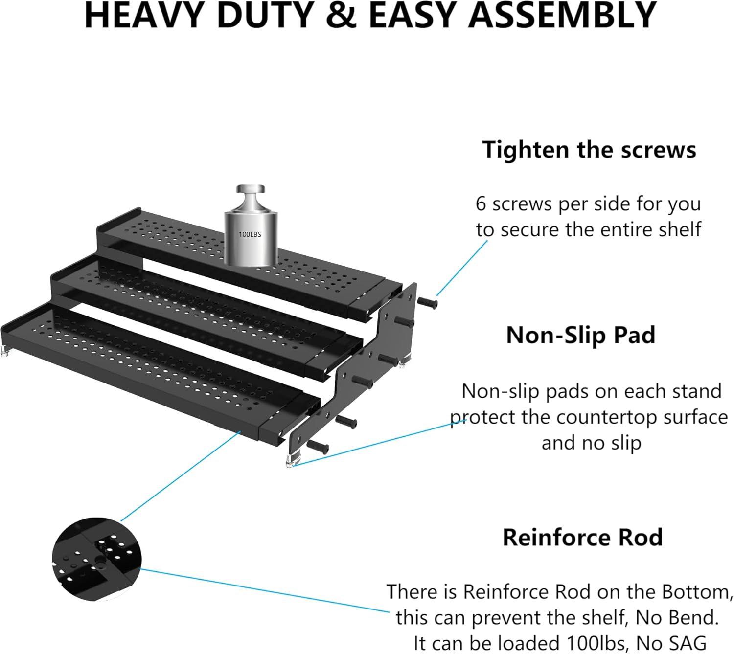 - ⭐[Heavy Duty]It was made by sturdy metal, it is superior durability and stability, Up to 100 lbs of household items can be held,will not easily bend or break,Non skid,sturdy,stylish,easy to clean and assembly,by tighting screws only.