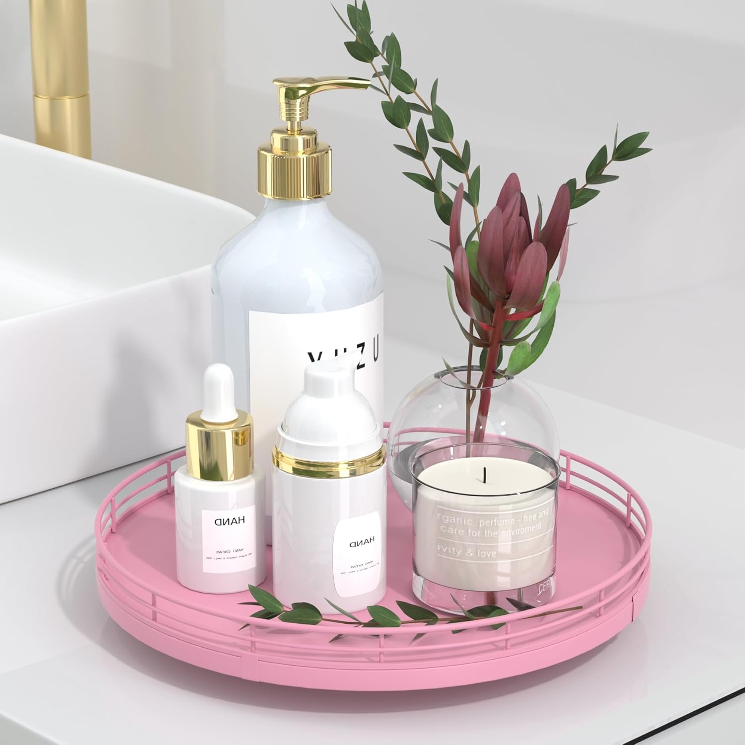 - ๐ ๐๐น๐๐ถ-๐ฃ๐๐ฟ๐ฝ๐ผ๐๐ฒ ๐จ๐๐ฎ๐ด๐ฒ: Perfect for a wide range of occasions and spaces. Whether used as a centerpiece table decorations, a vanity tray in your bathroom, or condiment organizer on your kitchen, this versatile round tray adapts to your needs in any room